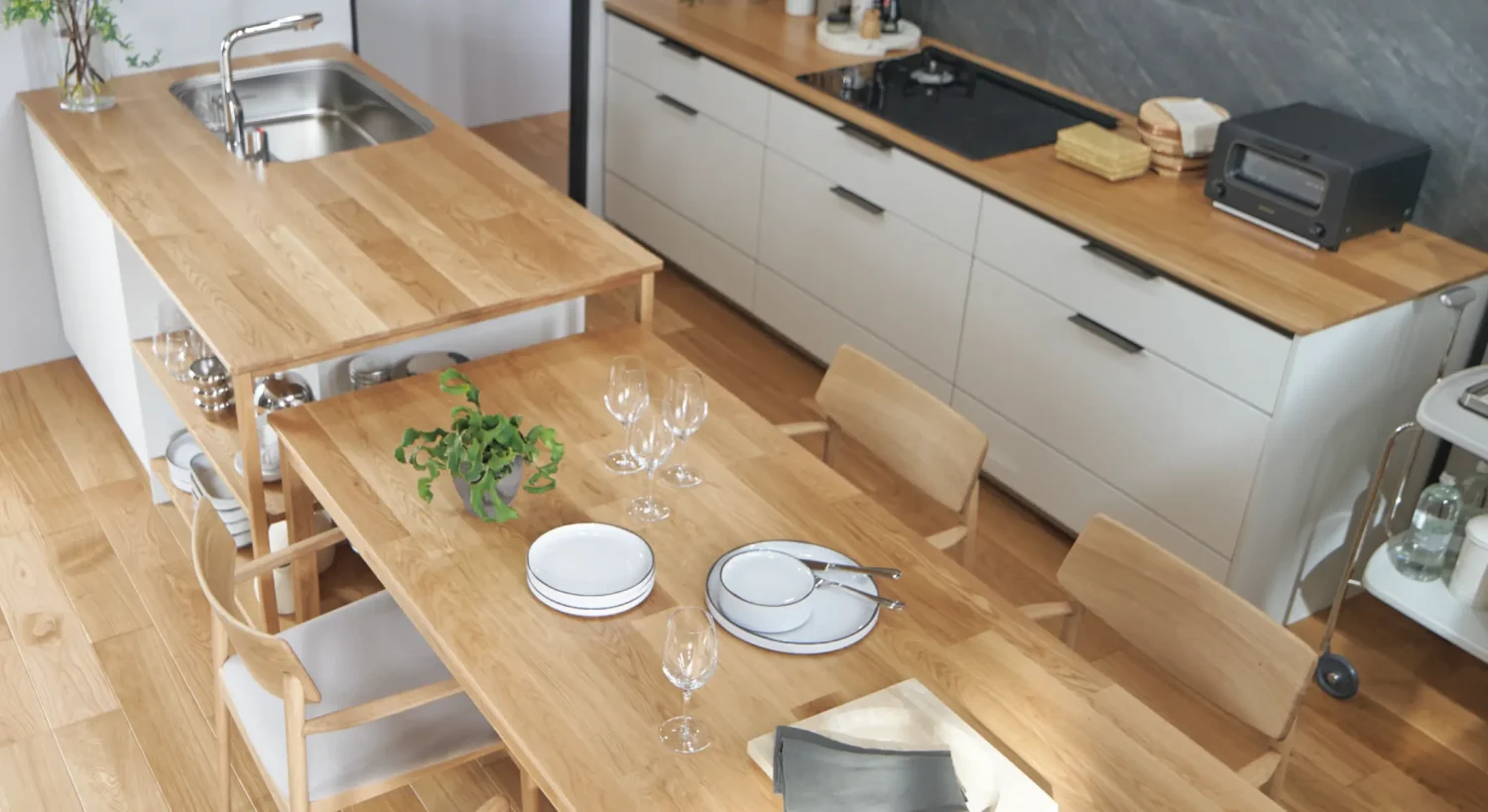 更に、天然木ワークトップと同じ仕様の天然木ライフテーブルも発売されています。