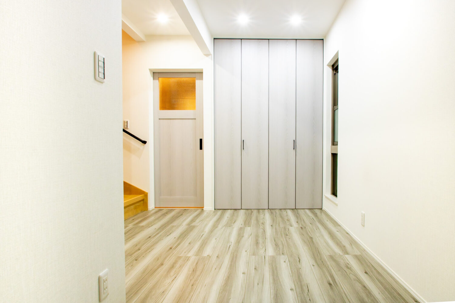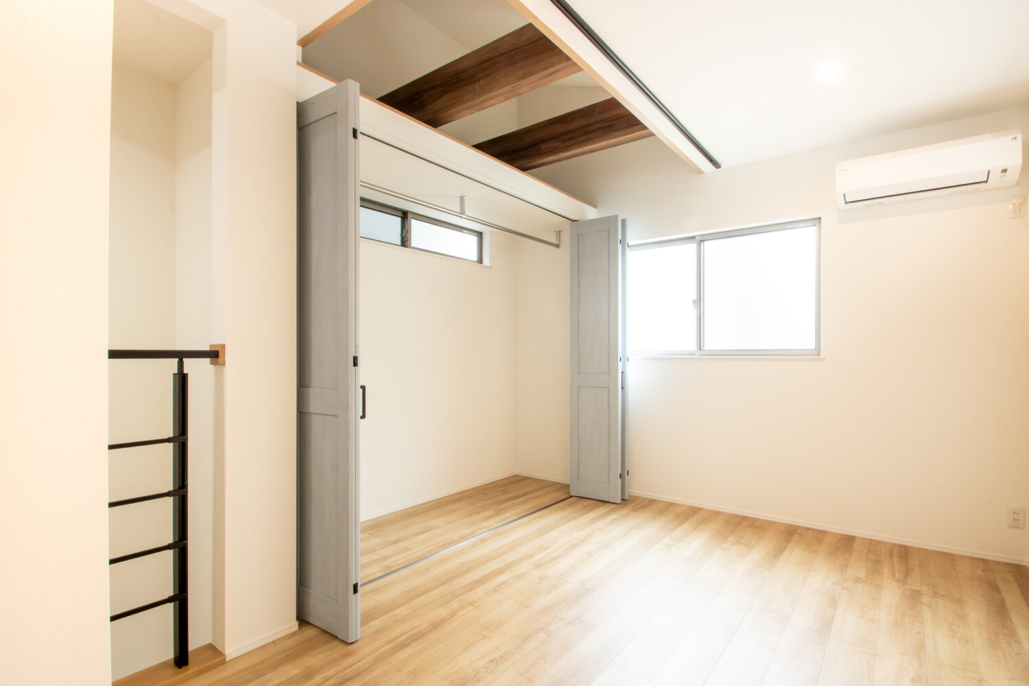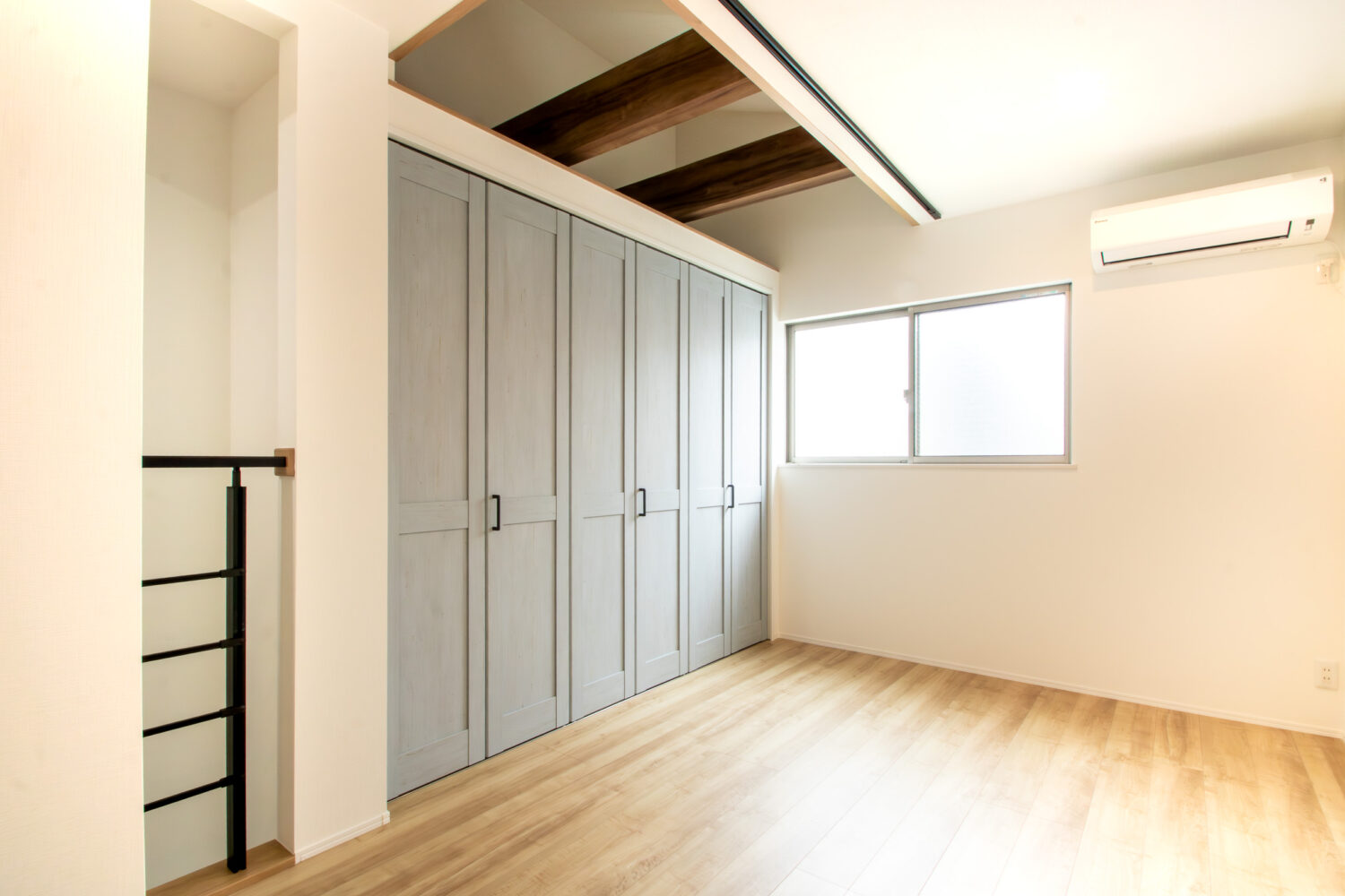 大容量のクローゼットはグレーの扉がアクセントとなり、モダンな雰囲気に。