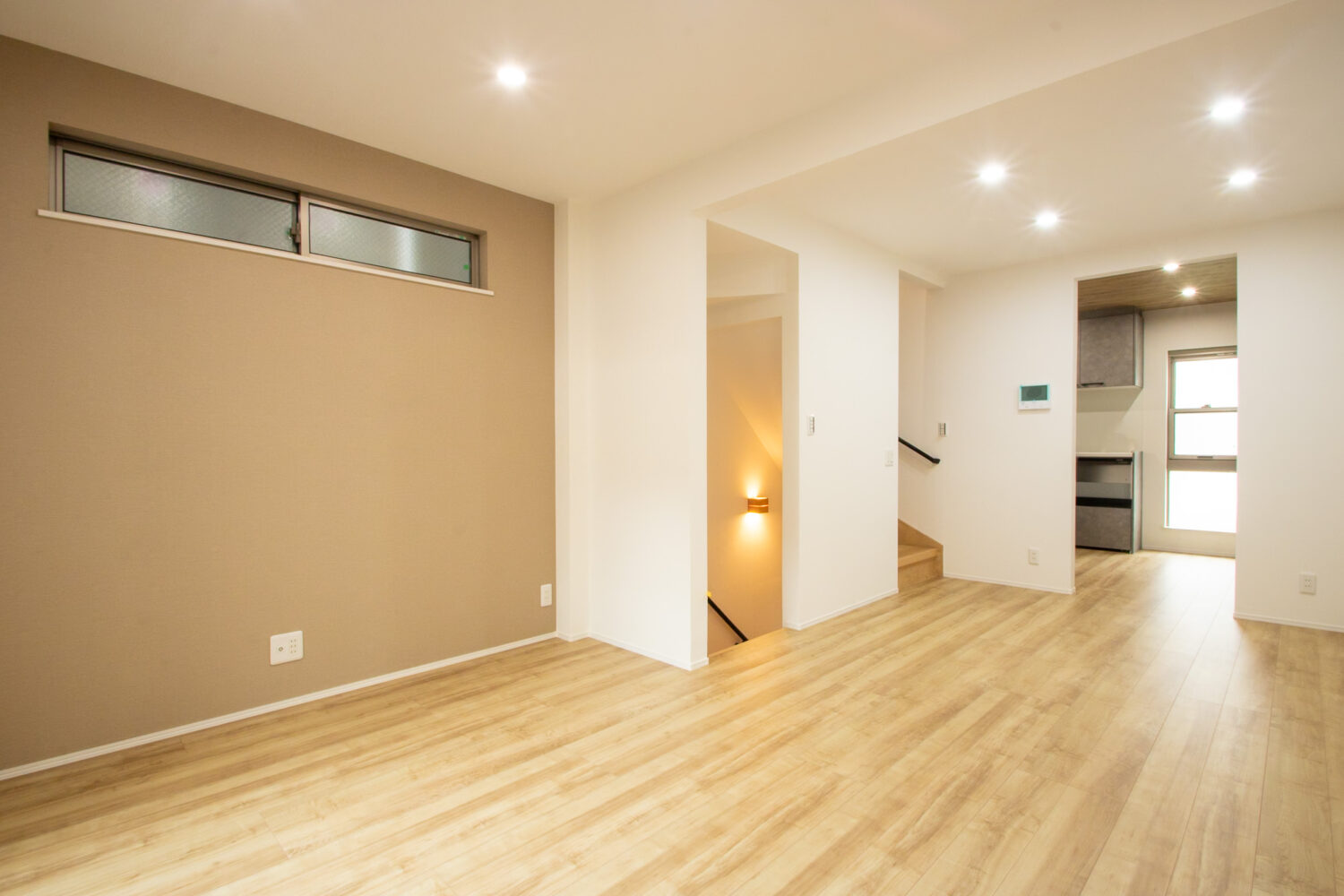 リビングとキッチンの繋がりを活かした、開放的な家事動線。