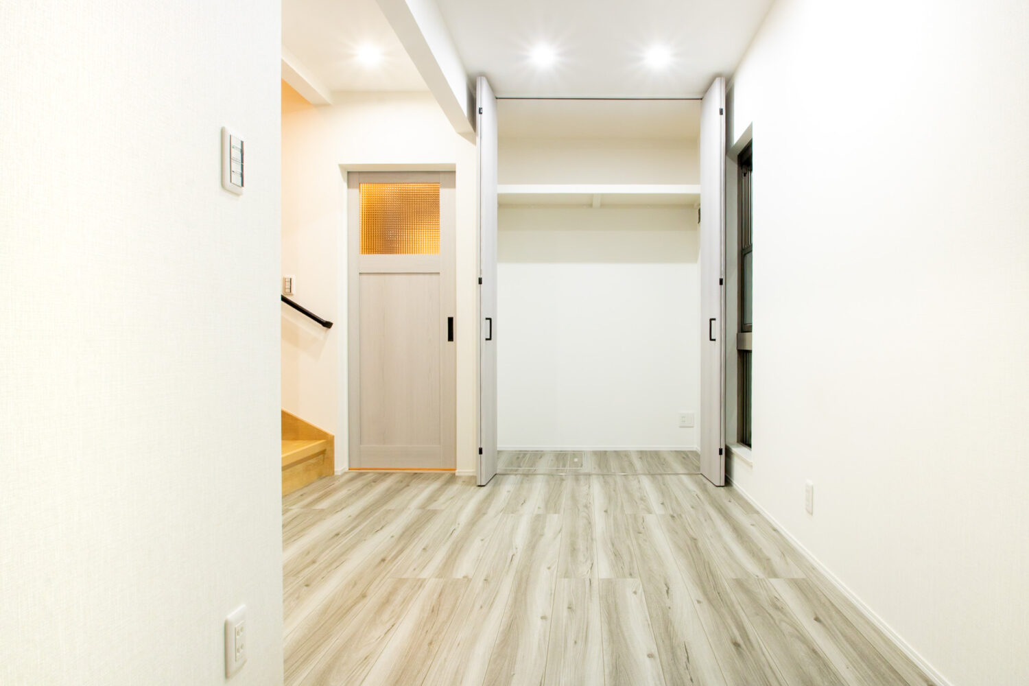 生活動線を遮らないシンプルな建具選びで、日々の暮らしをスムーズに。
