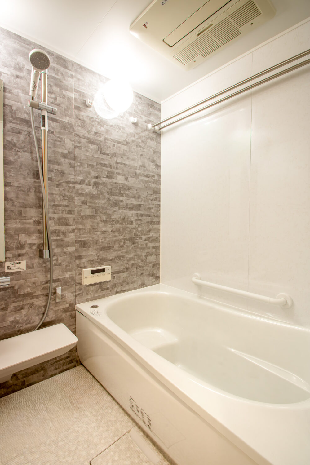 浴室はアクセント壁に石目調パネルで