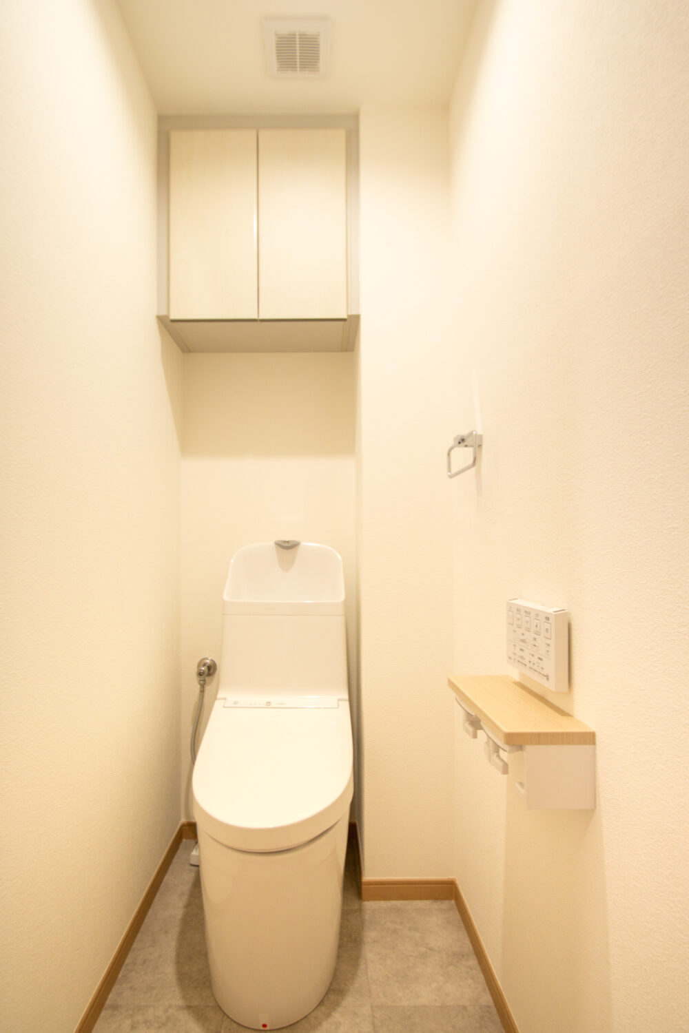 トイレはグレー調のフロアタイルで