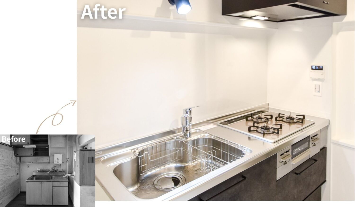 瞬間湯沸かし器付きの懐かしいキッチンから空間に合わせてコンパクトなシステムキッチンへ。